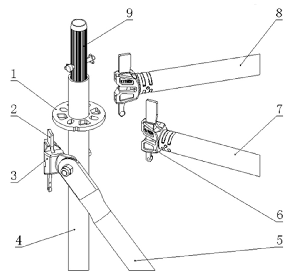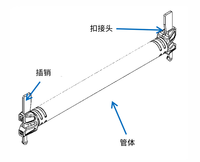 ② 兩端裝配有轉(zhuǎn)動(dòng)扣接頭,與立桿連接盤采用插銷連接的斜向桿件。
