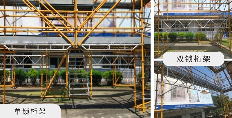 由上下弦桿焊接組成的與立桿扣件的水平加強(qiáng)桿件,用于腳手架跨空位置。 作用:(施工)人行、車通道、飛機(jī)、輪船、設(shè)備維修等等。