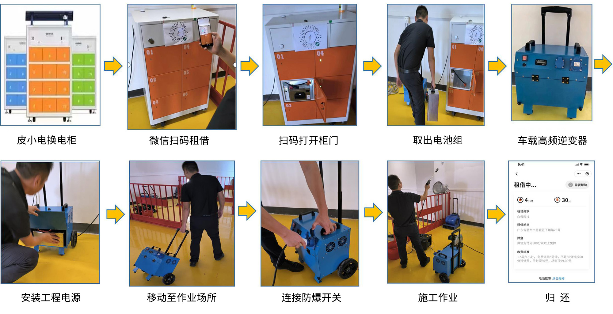 皮卡動(dòng)力針對(duì)房建工程用電的難題,推出以半固態(tài)電源、工程級(jí)逆變器、智能換電柜、管理平臺(tái)相結(jié)合的皮小電-共享臨電體系,替代配電箱連接市電的供電方式。