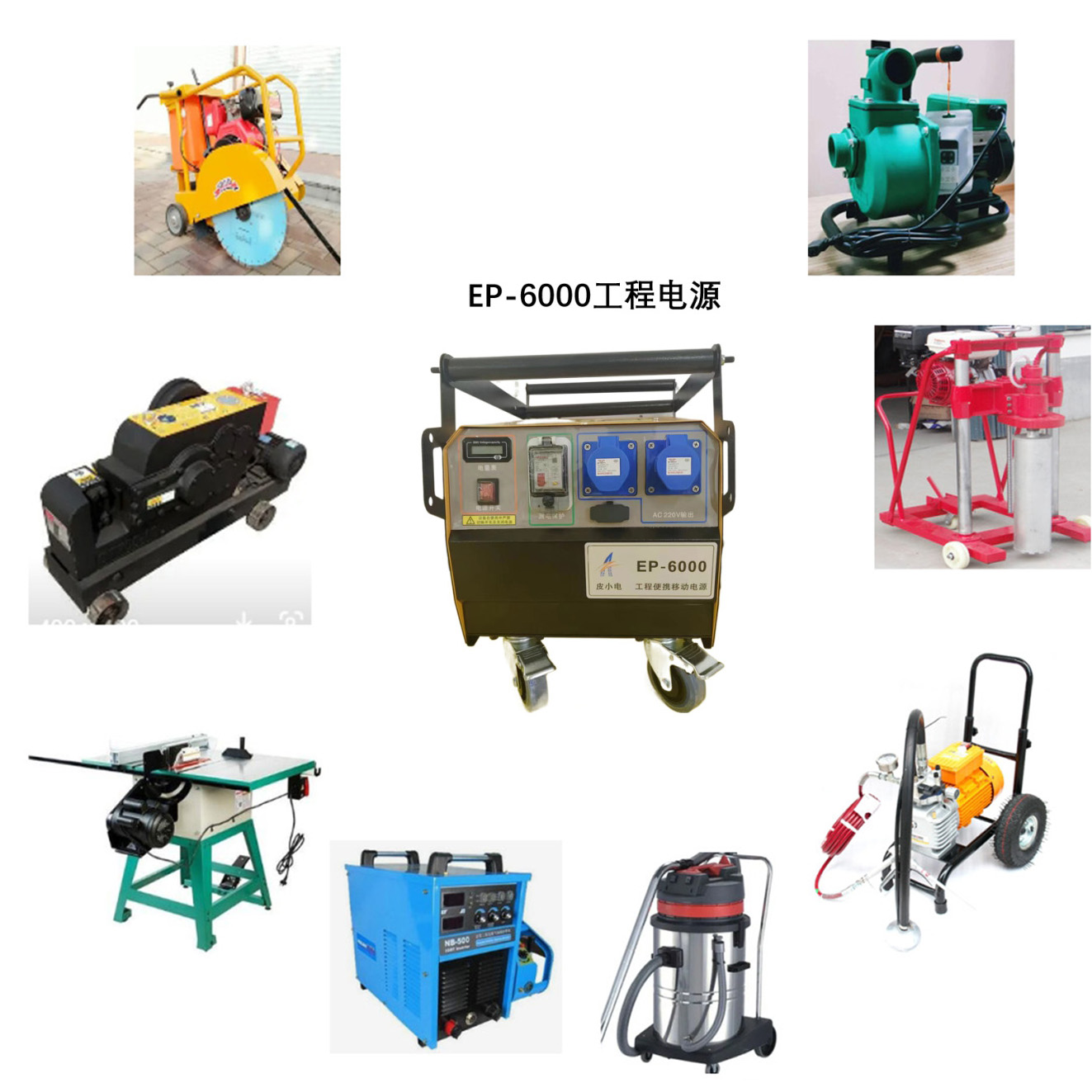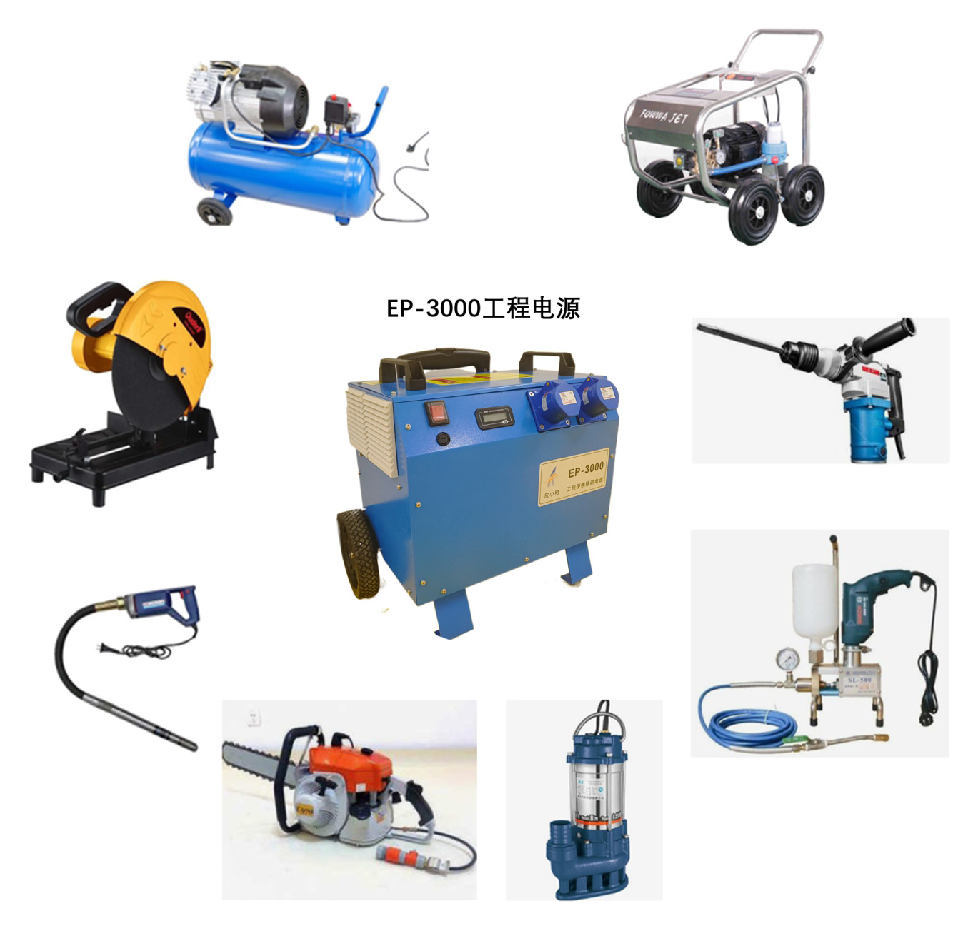 EP-3000工程電源,可滿足2-3把電錘,一臺(tái)注漿機(jī)同時(shí)作業(yè),持續(xù)作業(yè)超過7小時(shí);